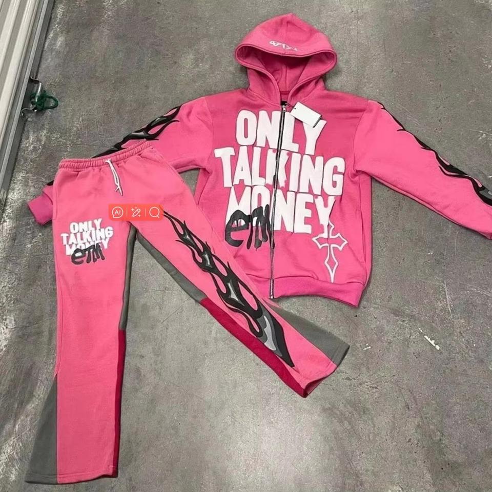 ชุดเซ็ตฮู้ดดี้และกางเกงวอร์มแบบโอเวอร์ไซส์ สกรีนโลโก้ได้ตามต้องการ สำหรับผู้ชายและผู้หญิง ขายส่ง เสื้อผ้าลำลองสวมใส่สบาย