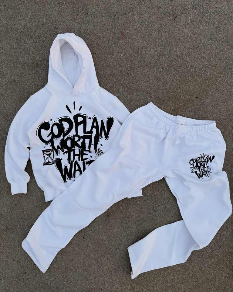 ชุดวอร์มสองชิ้นสำหรับทั้งชายและหญิงชุดแผนของพระเจ้าคุ้มค่ากับชุดเสื้อมีฮู้ดและกางเกงสำหรับใส่วิ่งชุดสตรีทแวร์สีขาวมีสไตล์
