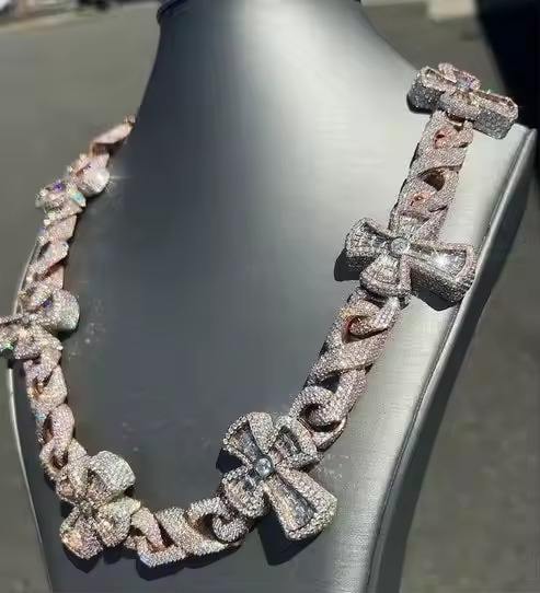 Unisex VVS เพชรมออิสซาไนต์925เงินสเตอร์ลิงสายโซ่เนื้อดีสร้อยคอสำหรับงานปาร์ตี้สุดอินเทรนด์สีขาวทองแบบคิวบา
