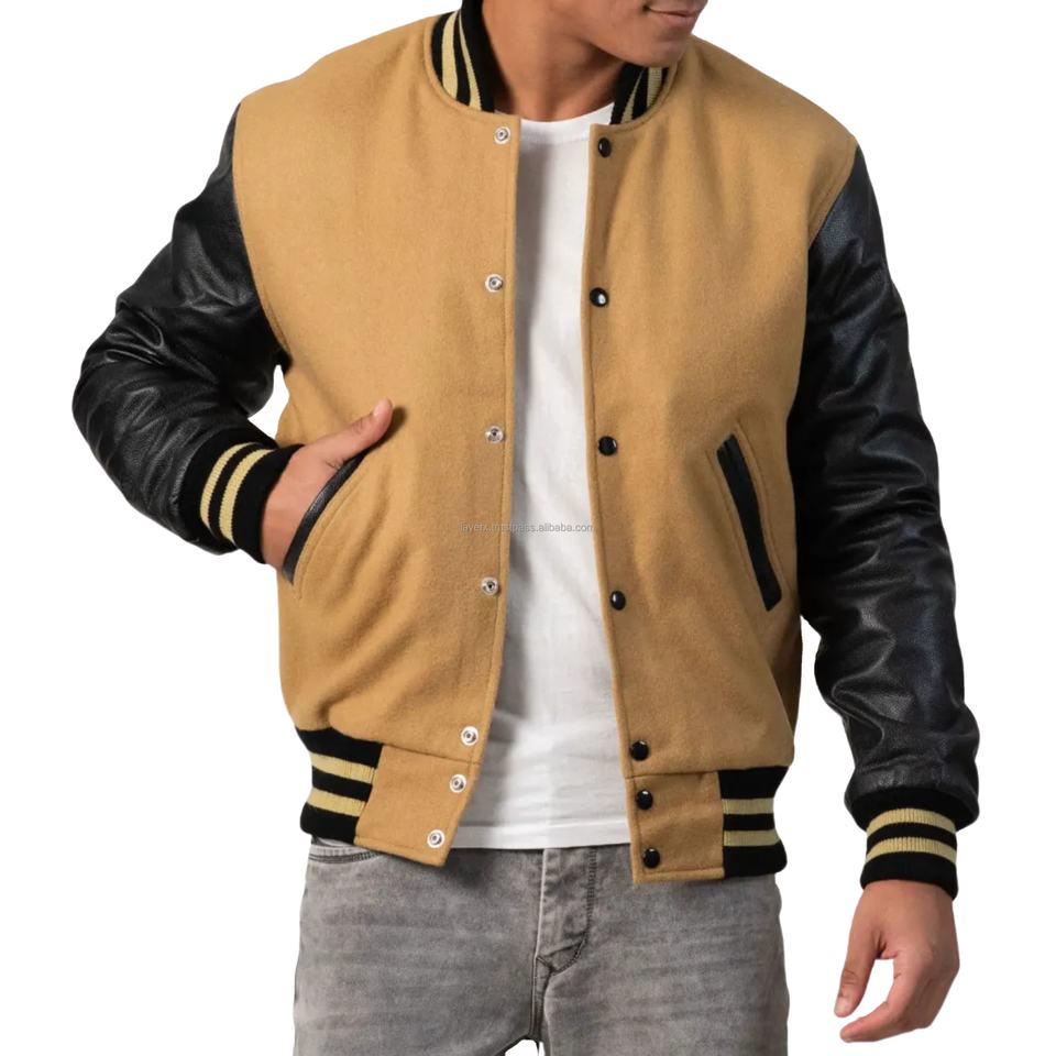 เสื้อแจ็คเก็ตวาร์ซิตี้แบบยูนิเซ็กซ์ ซิป คอวี ผ้าวูล แขนเสื้อแบบแพทช์เวิร์ค คอริบบ์ ซับในแบบควิลท์ สไตล์วินเทจอเมริกัน