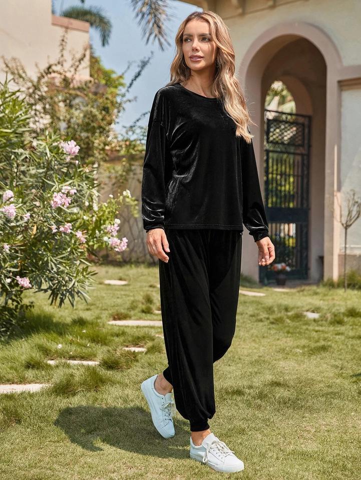 ชุดวอร์มกำมะหยี่แบบยูนิเซ็กซ์ ผ้าฝ้าย 100% ชุดกันลมสำหรับเล่นกีฬา ชุดฤดูหนาวสำหรับผู้หญิง ระบายอากาศได้ดี ชุดสองชิ้นขายาว