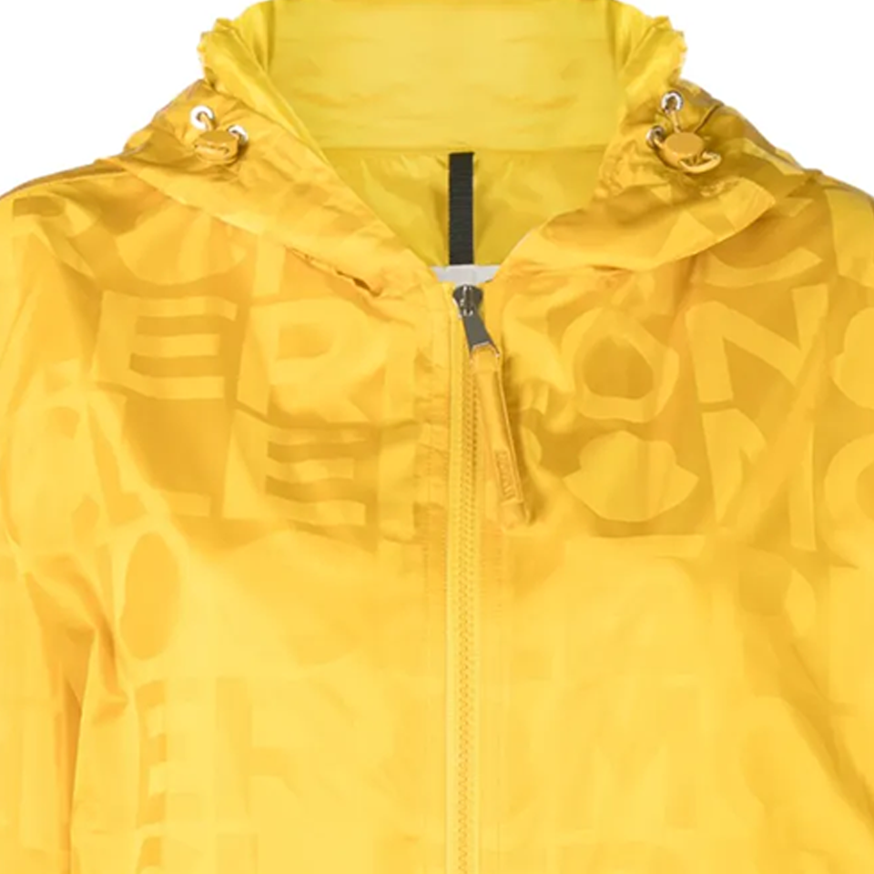 เสื้อแจ็คเก็ตดีไซน์เนอร์แบบกันน้ำ คอตั้ง มีฮู้ด ไซส์พลัส ซิปแบบแข็ง พิมพ์ลายโลโก้ ผ้าซาตินสีเหลืองกล้วย ยูนิเซ็กส์ แบรนด์เวอร์นันท์