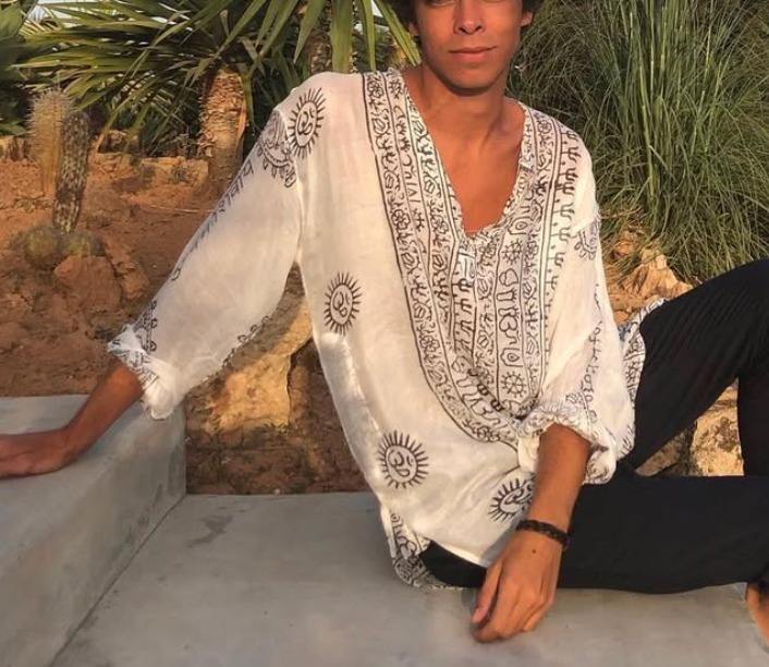 เสื้อคุर्ตาสไตล์วินเทจโบโฮทรงหลวมพิมพ์ลายออมมันตรา แขนสั้น ผ้าเรยอนระบายอากาศ ลายดอกไม้เพสลีย์ ตัวอักษรปะติดดิจิทัล