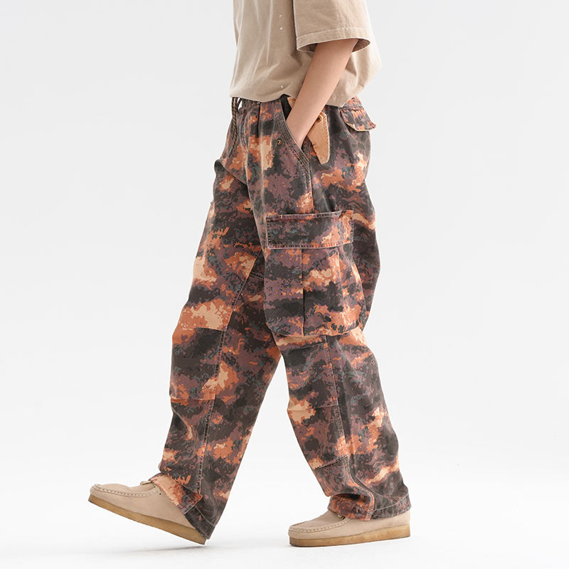 กางเกงคาร์โก้ลายพรางวินเทจทรงหลวมขาตรงเอวผูกเชือกผ้าฝ้าย 100% สีสันสดใสสไตล์ลำลองมีกระเป๋าหลายช่อง