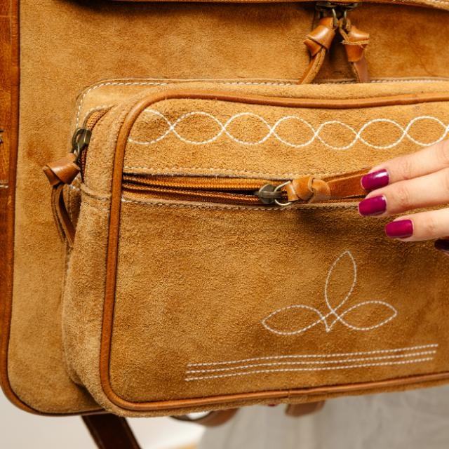 กระเป๋าเป้สะพายหลังหนังวัวแท้แบบวินเทจใส่ได้ทั้งชายและหญิงมีซิปสีดำกันขโมยลายเรขาคณิต