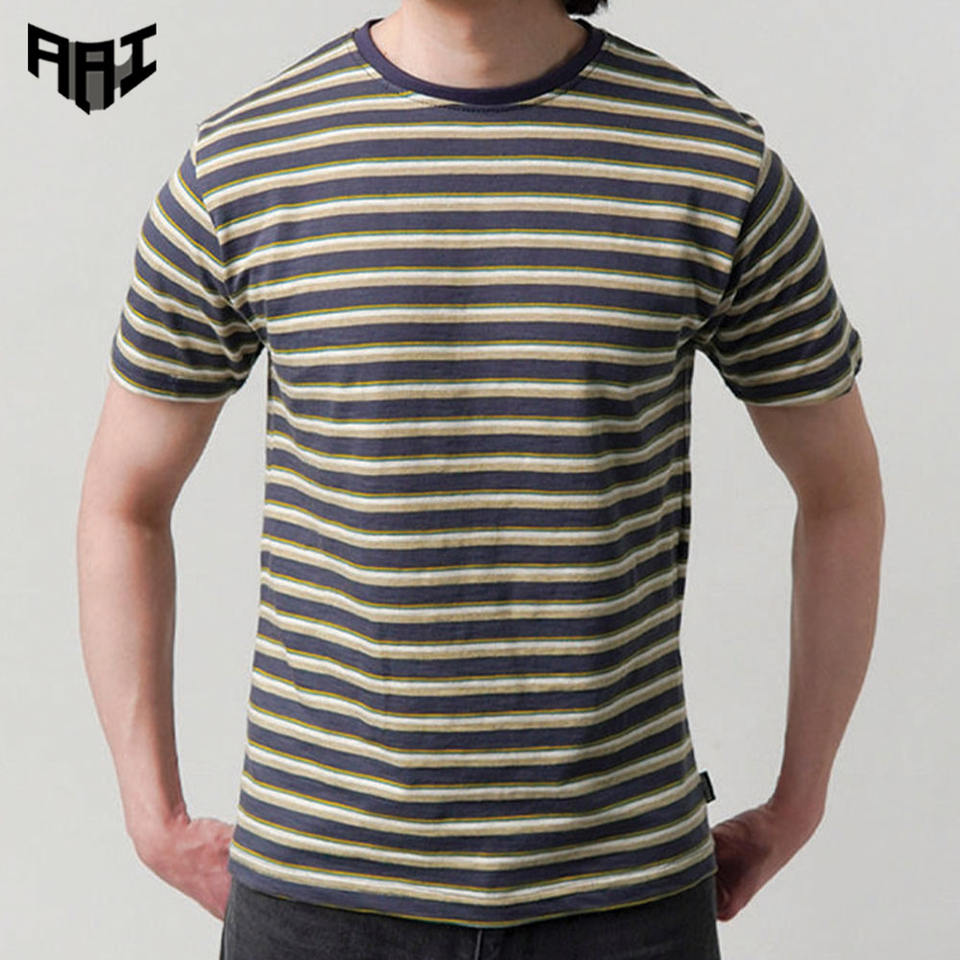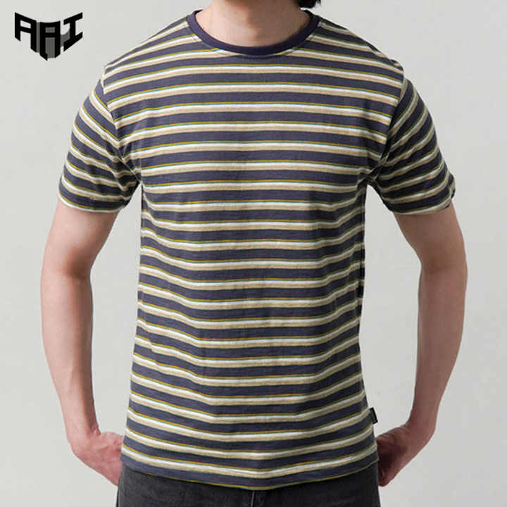 เสื้อยืดลายทางสไตล์วินเทจ ยูนิเซ็กซ์ ผ้าฝ้ายนุ่ม สตรีทแวร์ คอกลม ใส่ได้ทุกวัน เสื้อฤดูร้อน รับผลิตตามแบบ สั่งทำแบรนด์ส่วนตัว
