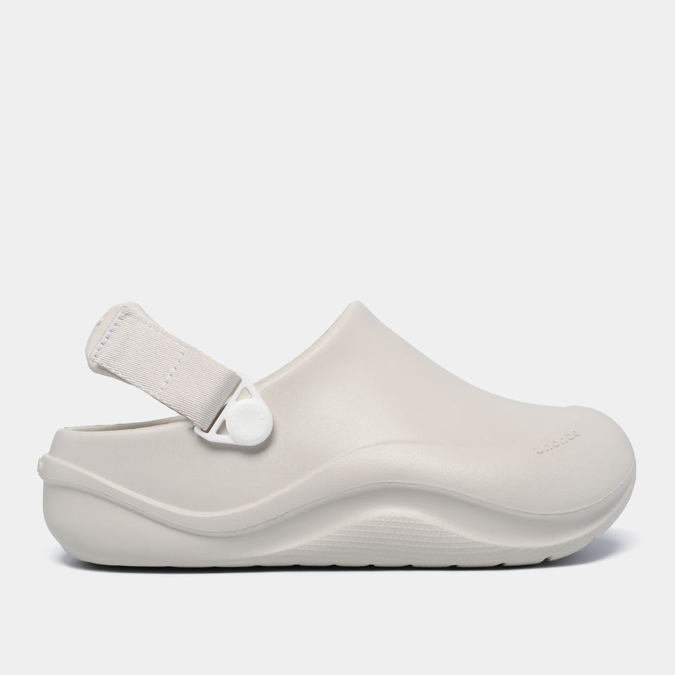 รองเท้าแตะแบบสวม Unisex สีขาว ทำจากวัสดุ EVA ปิดนิ้วเท้า ยี่ห้อ SUKE สวมใส่สบาย พร้อมหัวเข็มขัดแบบหมุน กันน้ำ กันลื่น ผลิตในเวียดนาม