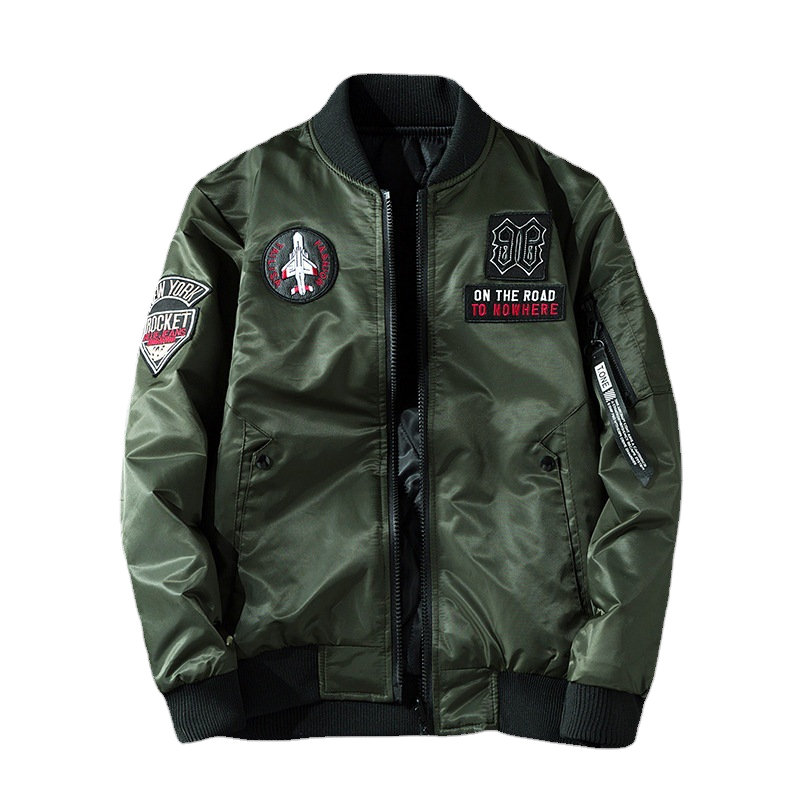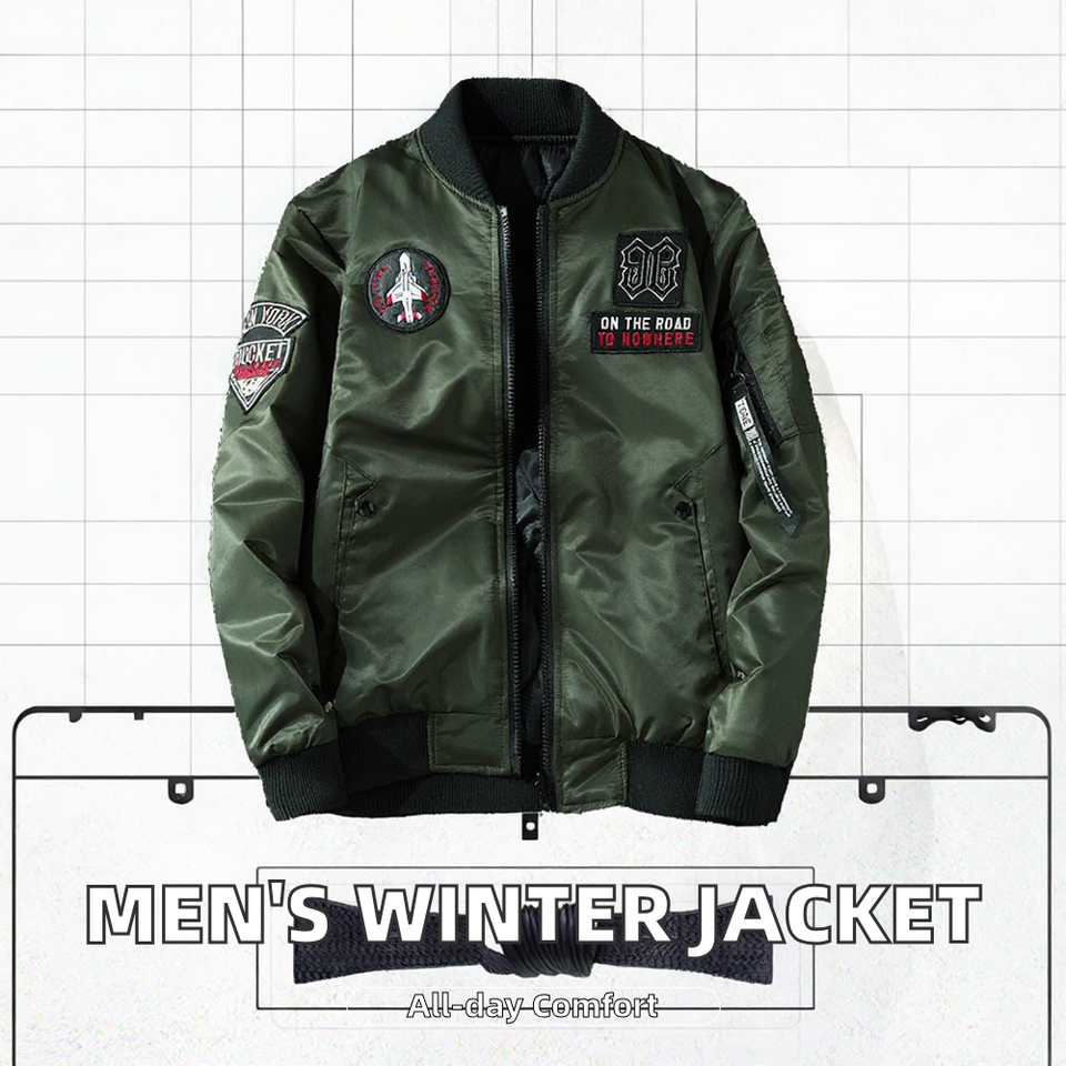 เสื้อแจ็คเก็ตนักบินแบบยูนิเซ็กซ์สำหรับฤดูหนาว แบบสองด้าน ซิป ผ้าขนสัตว์ ย้อมสีพื้น ความหนาปานกลาง สไตล์เบสบอล แบบมีกระเป๋า