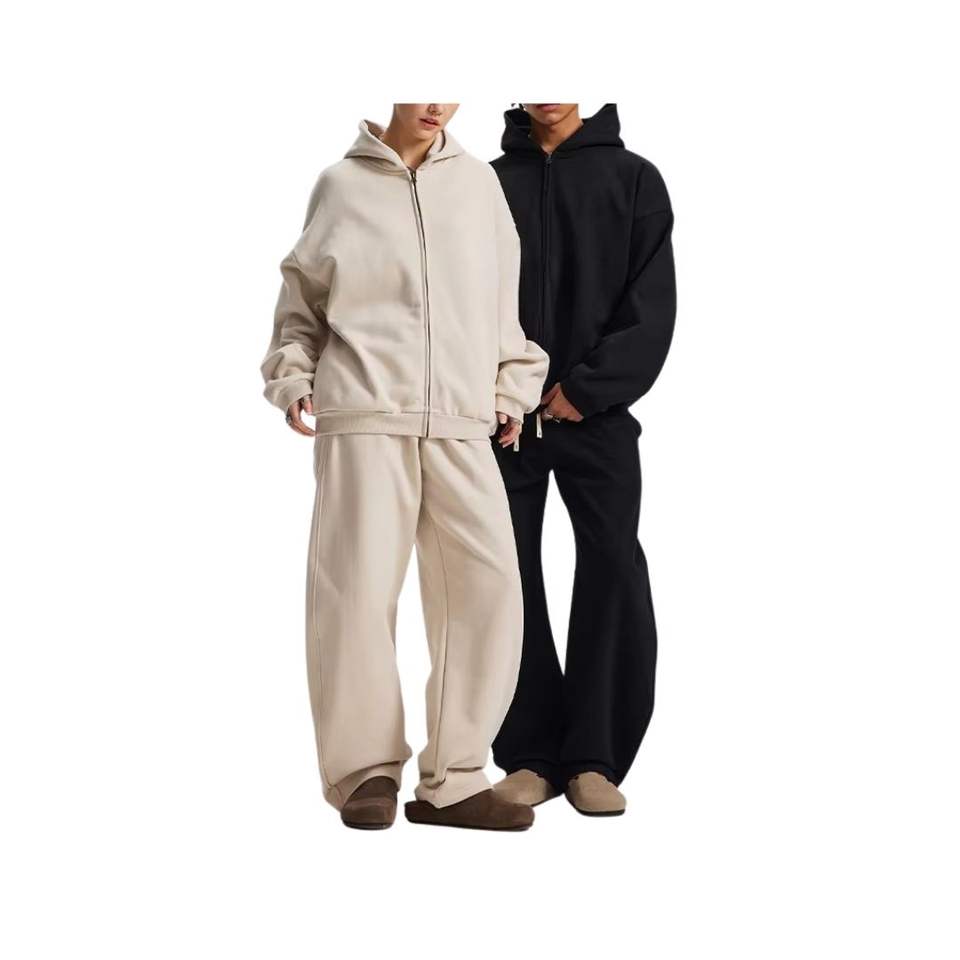ชุดวิ่งลำลองฤดูหนาวแบบยูนิเซ็กซ์ สีตามสั่ง ผ้าฟลีซคอตตอน 100% ชุดวอร์มมีฮู้ด กางเกงจ็อกเกอร์ ระบายอากาศได้ดี