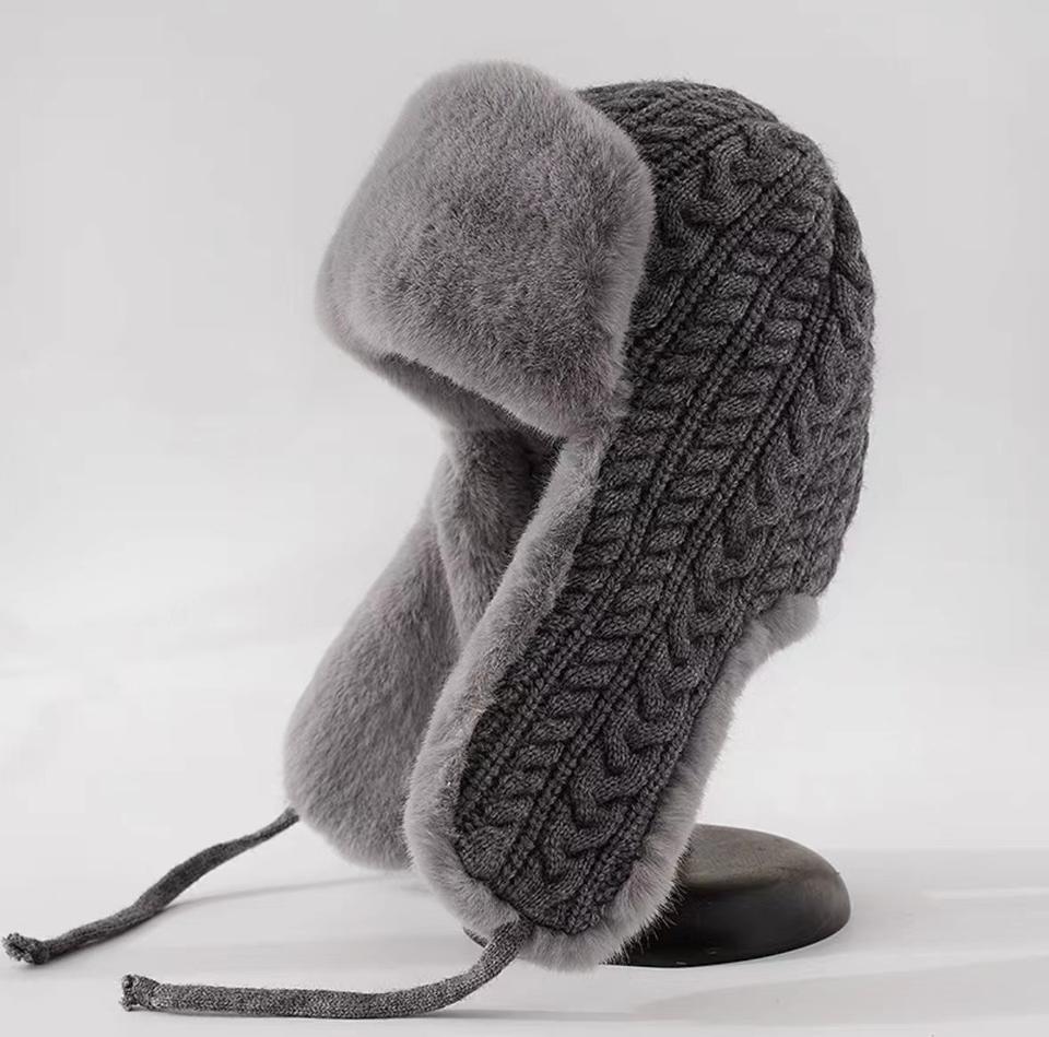 ผ้าวูลผสมพิมพ์ลายสำหรับทุกเพศฤดูหนาวปกหูหนาอบอุ่นหมวกขี่จักรยานกลางแจ้งกันหนาว Lei Feng