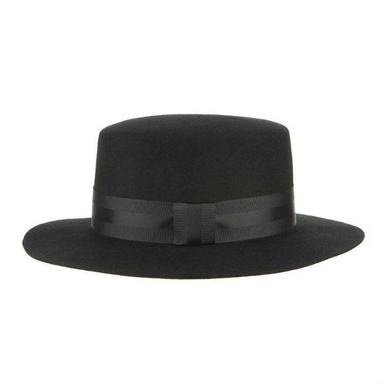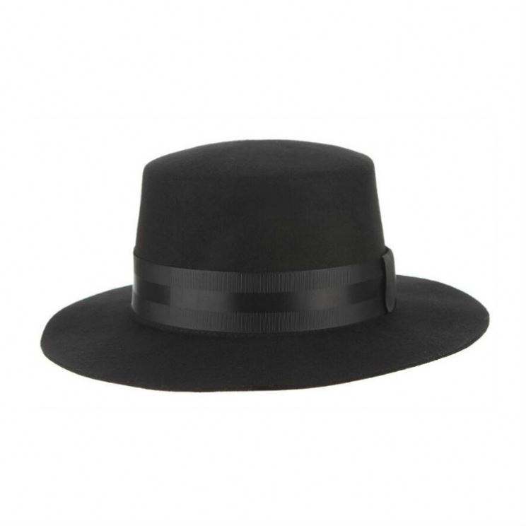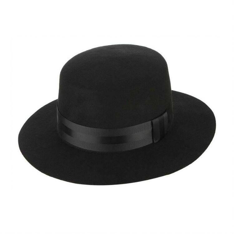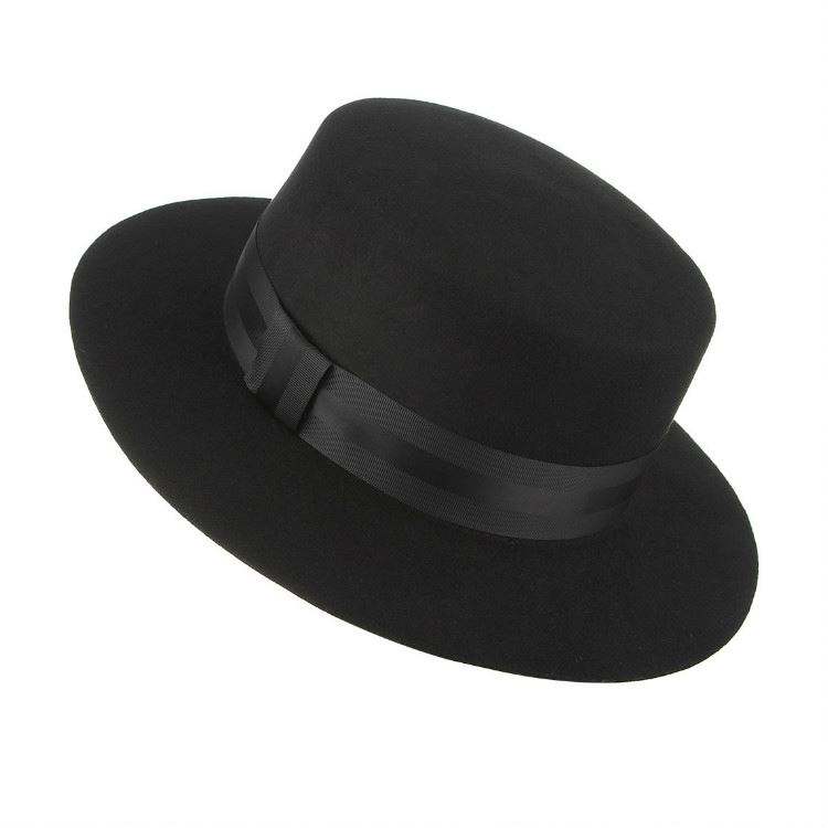 หมวกเฟโดราขนสัตว์แท้ 100% สีดำ สไตล์เรโทร สายริบบิ้นกว้าง ทรงแบน ระบายอากาศได้ดี เหมาะสำหรับผู้ใหญ่ ทุกฤดู