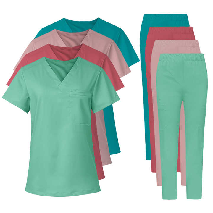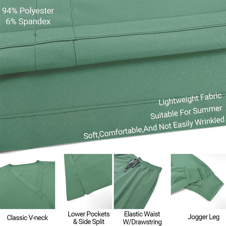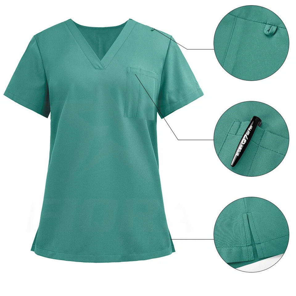 ชุดยูนิฟอร์มพยาบาลแบบทอสำหรับทุกเพศ คุณภาพสูง เสื้อคอวีสำหรับพยาบาล ขายส่งชุดสครับทางการแพทย์