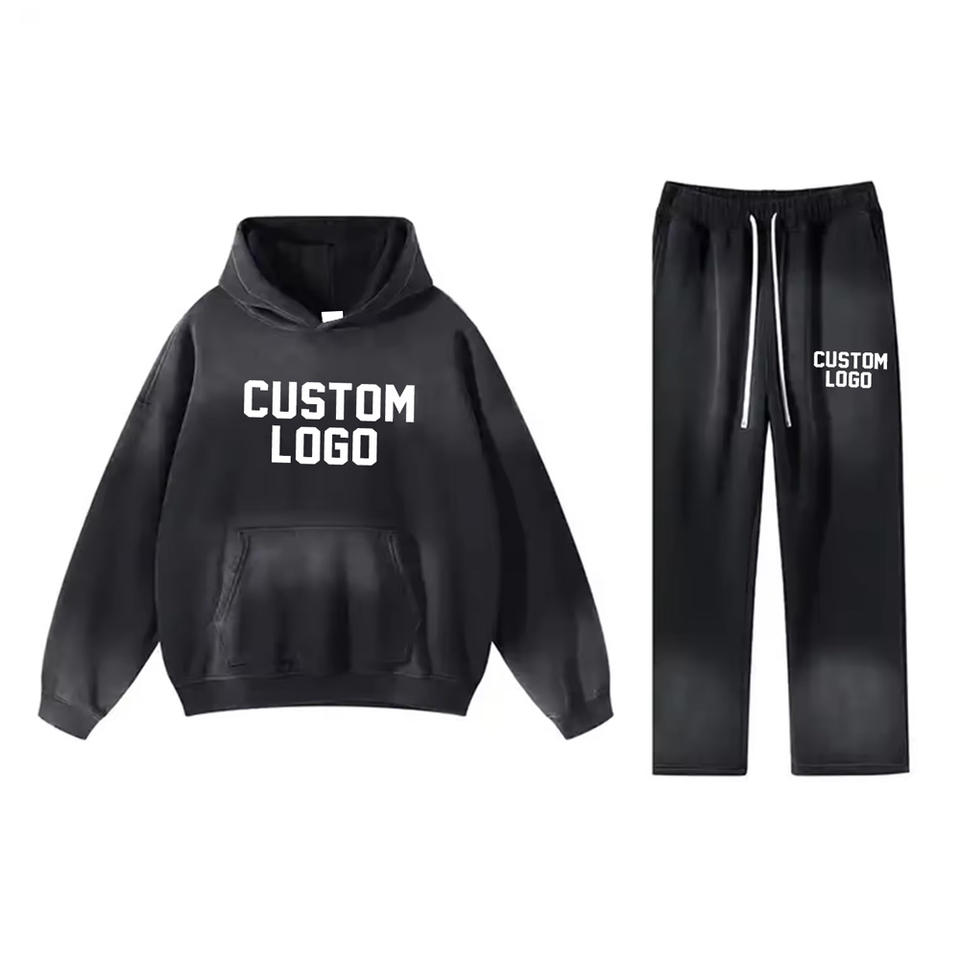 Unisex XXL Oversized Winter Tracksuit Set Puff Printing Hood Heavyweight Breathable Fleece Sweatpants Custom Plus Size