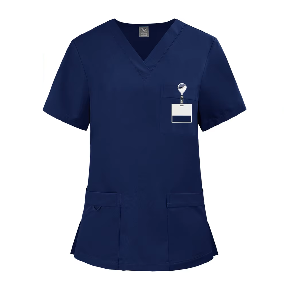 เสื้อสครับแนวคอวีผ้ายืดใส่ได้ทั้งชายและหญิงเสื้อสเวตเตอร์มีกระเป๋า3กระเป๋าและกางเกงเอวยางยืดเครื่องแบบโรงพยาบาล ODM