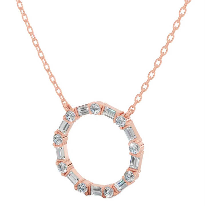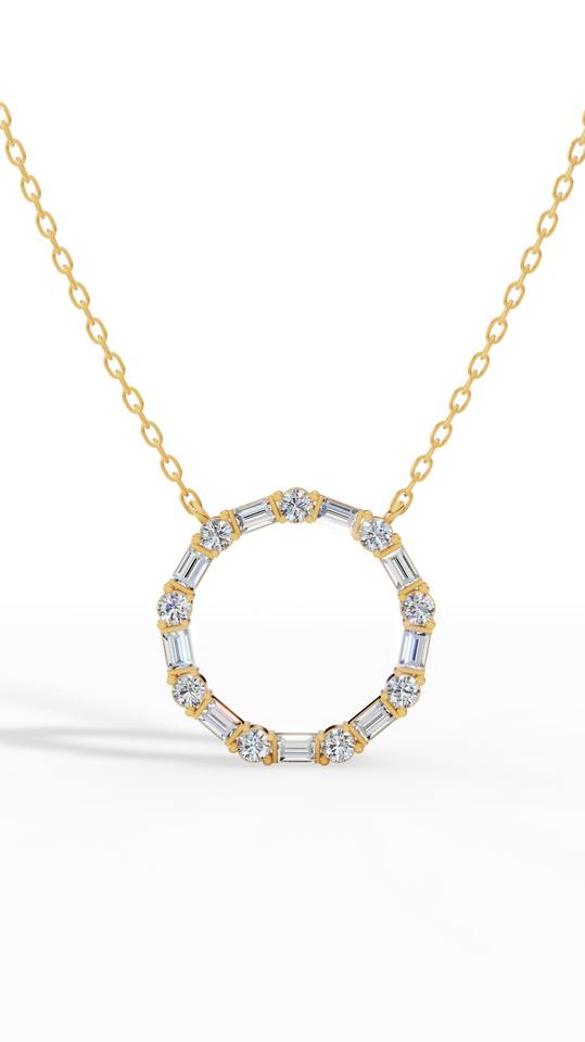 สร้อยคอวงกลม Unity ประดับเพชรทรงบาแกตต์และทรงกลม เพชรเลี้ยงในห้องปฏิบัติการ ทอง 10K สีใส VVS สไตล์มินิมอล จี้ทองคำขาว ทองเหลือง ทองชมพู