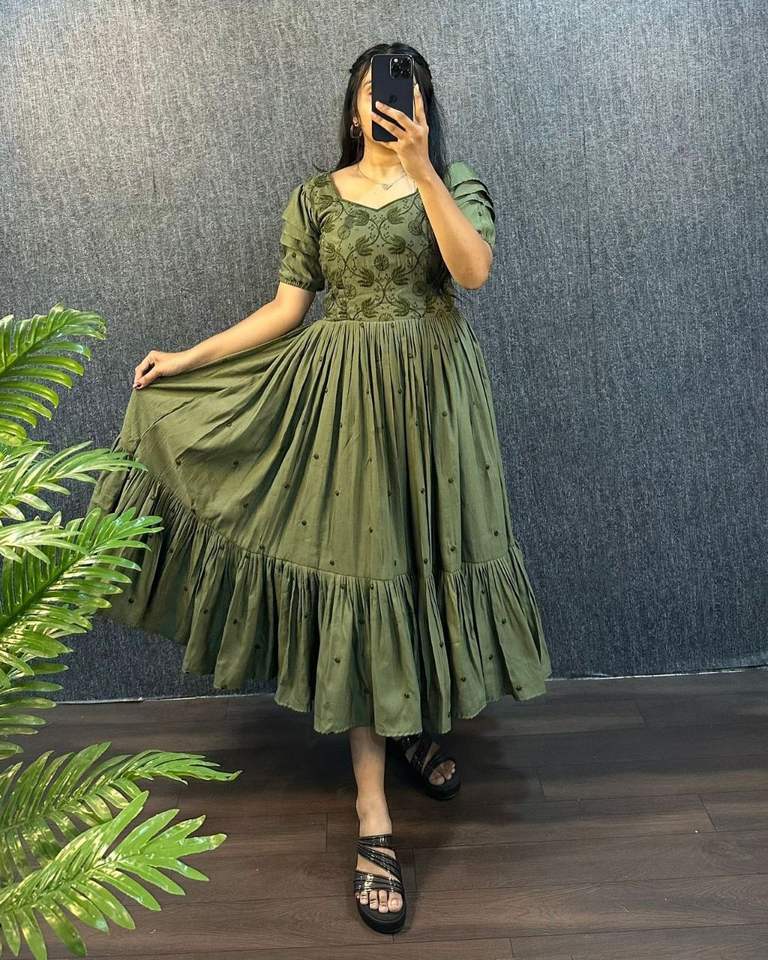 ชุดเดรสผ้าฝ้ายปักลายทรงบานระดับพรีเมียมยูนิตี้ ลักซ์เชอร์