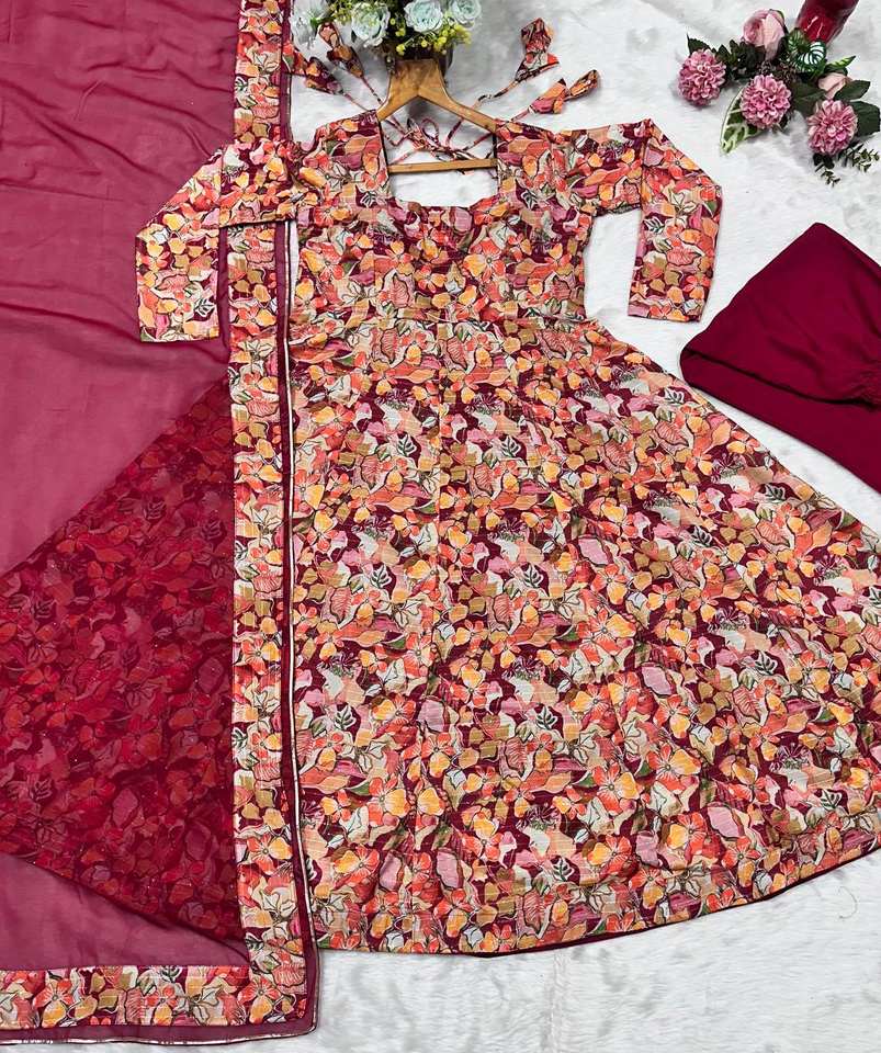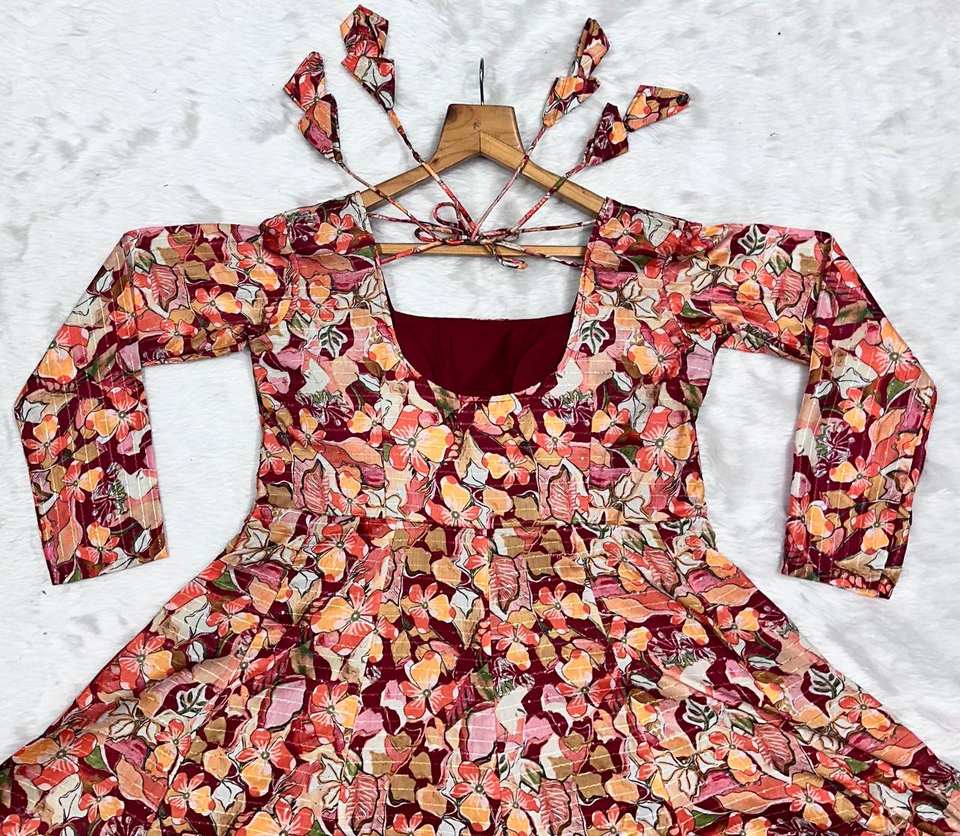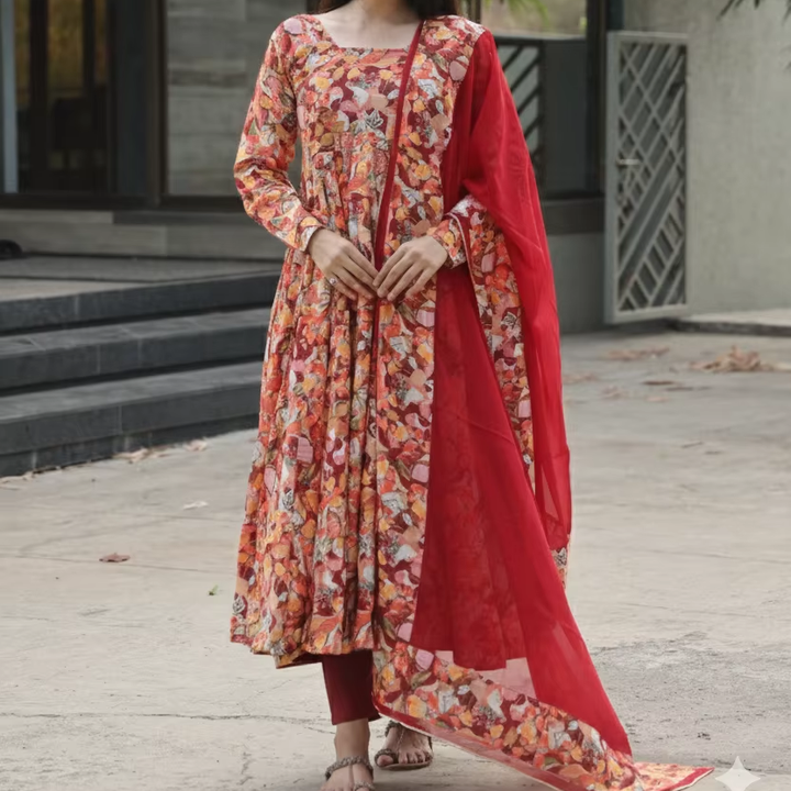 ชุดอนาร์กาลีคุर्ตาผ้าเรยอนพิมพ์ลายดอกไม้สำหรับผู้หญิง ยูนิตี้ ลักชัวร์ พร้อมผ้าคลุมไหล่ชีฟอง เนื้อผ้านุ่ม ระบายอากาศได้ดี เสื้อผ้าสไตล์ชาติพันธุ์