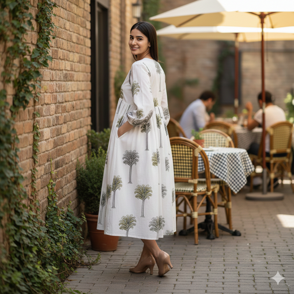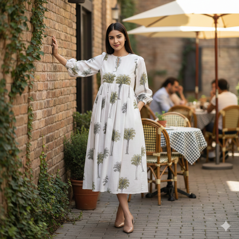 Unity Luxure Womens Premium Soft Cotton Printed Empire Waist Midi Dress