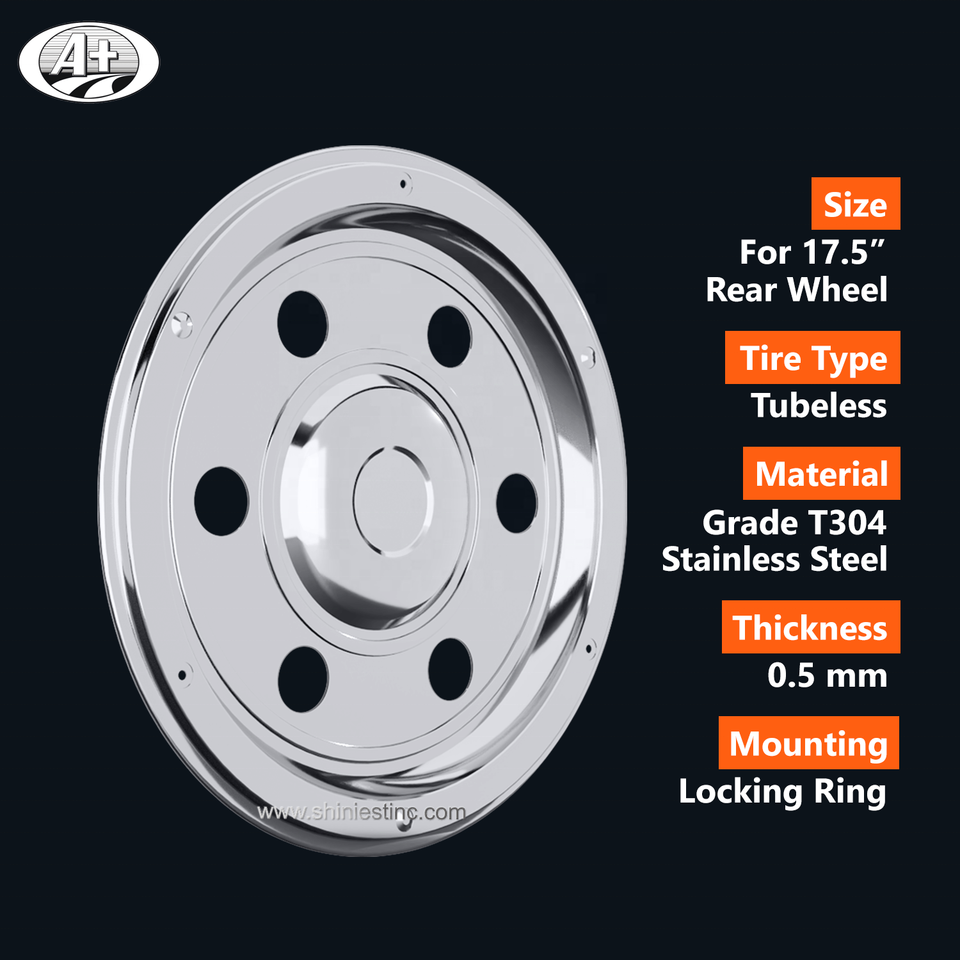 ฝาครอบล้อหลังรถบรรทุกขนาด 17.5 นิ้ว สำหรับรถบรรทุก ทำจากสแตนเลส
