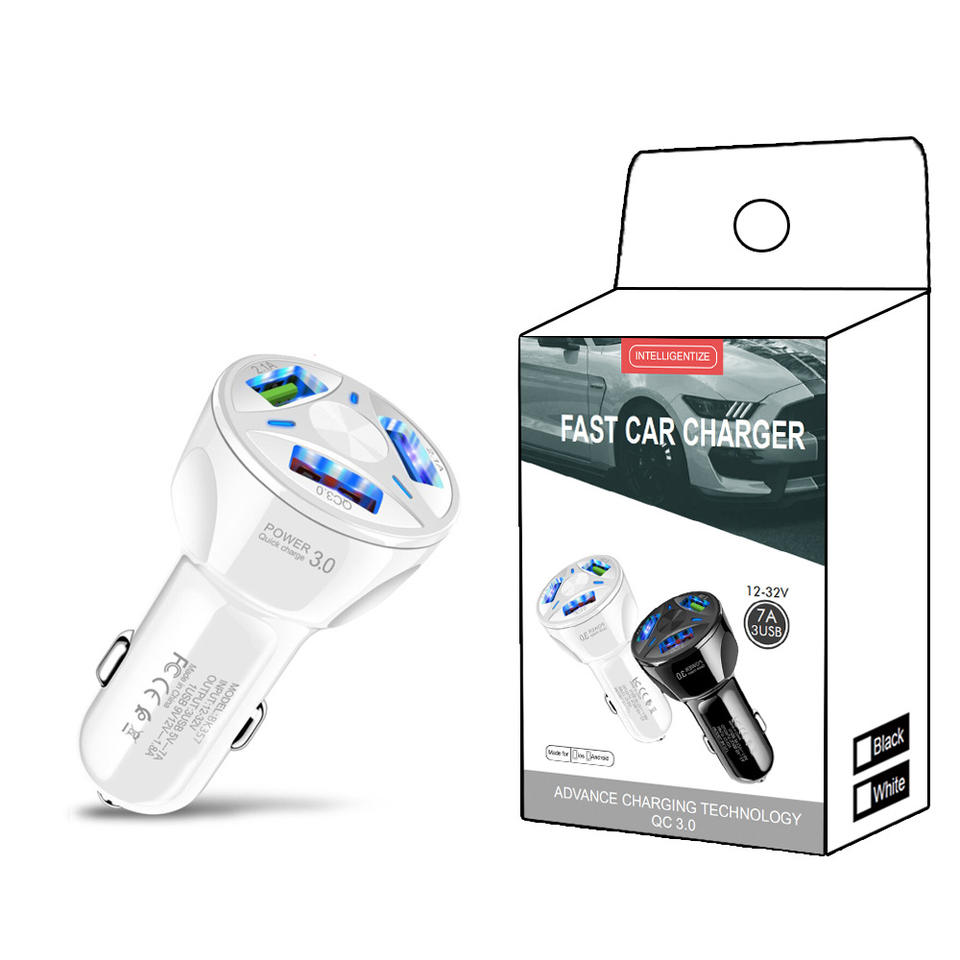 ที่ชาร์จในรถ USB 18W 3พอร์ตอเนกประสงค์ QC3.0 7A 3 USB 5V/3A PD สำหรับ iPhone สำหรับ Samsung Xiaomi สำหรับมือถือหัวเว่ย