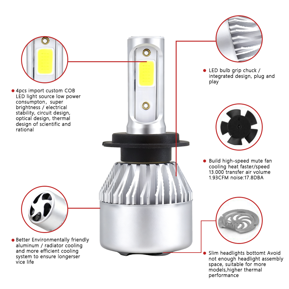 Universal 36W S2 COB LED Headlight Bulbs High/Low Beam H4 12V 8000 Lumens 6500K/6000K Car Headlamp