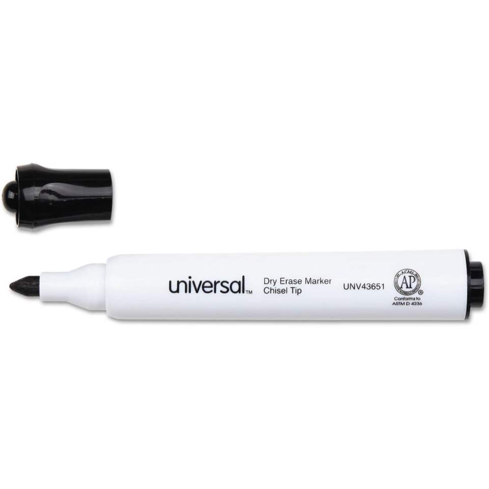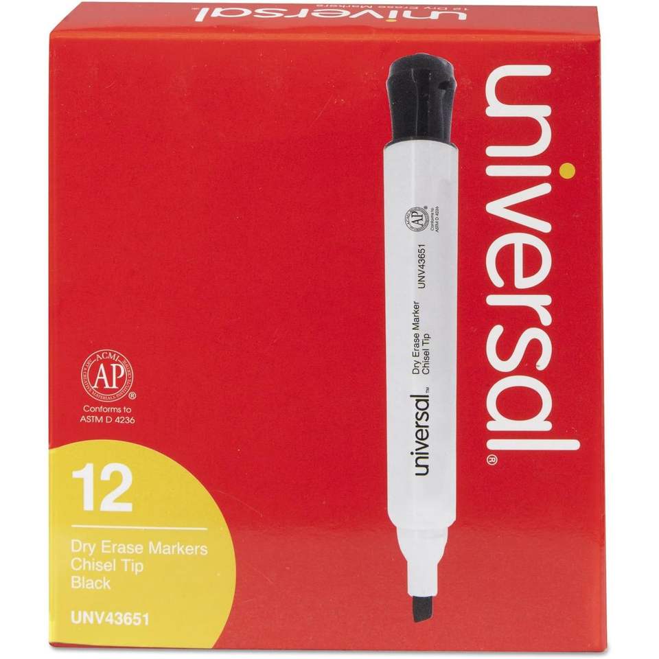 ปากกาไวท์บอร์ดแบบลบได้ Universal 43651 แพ็ค 12 ด้าม สีดำ หัวตัด ทำจากพลาสติก สำหรับใช้ในโรงเรียน