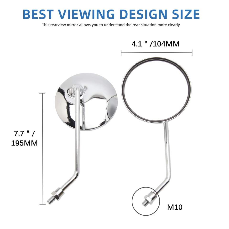 กระจกมองหลังมอเตอร์ไซค์โครเมียมแบบยูนิเวอร์แซล ขนาด 7/8 นิ้ว 10 มม. 8 มม. ติดตั้งที่แฮนด์