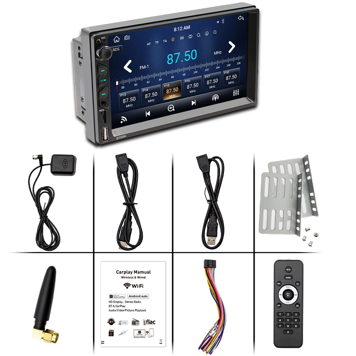 Universal 7 นิ้วหน้าจอสัมผัสเครื่องเล่นดีวีดีรถยนต์ไร้สายCarplayวิทยุรถยนต์Double Dinรถสเตอริโอพร้อมGPSนําทางWIFI BT