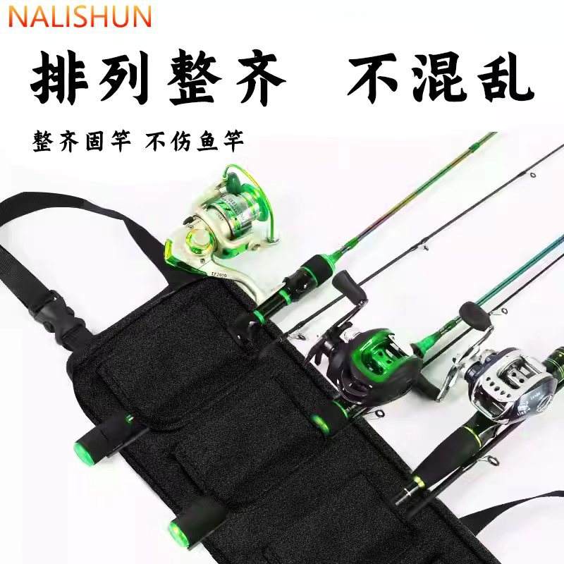 ที่วางคันเบ็ดตกปลาในรถยนต์สีดำ 4 แถว พร้อมกระเป๋าเก็บของไนลอนสำหรับจัดระเบียบอุปกรณ์ตกปลาด้านหลังเบาะนั่ง