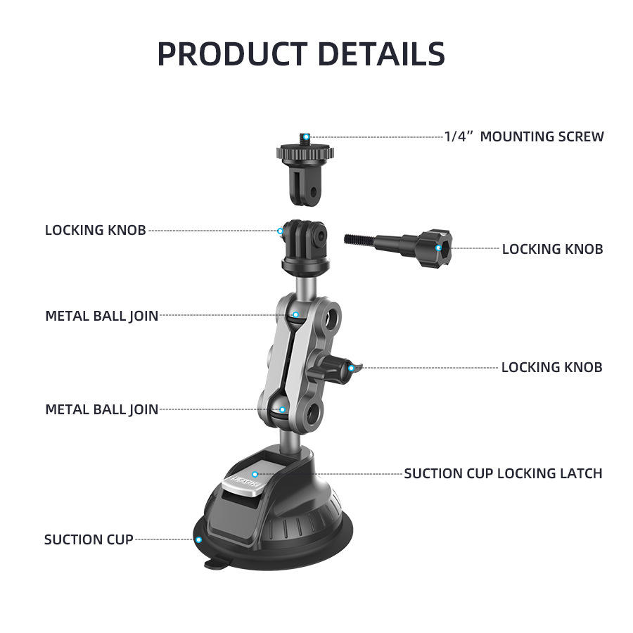 ที่ยึดติดรถยนต์แบบสุญญากาศสำหรับกล้องกีฬา 360 องศา