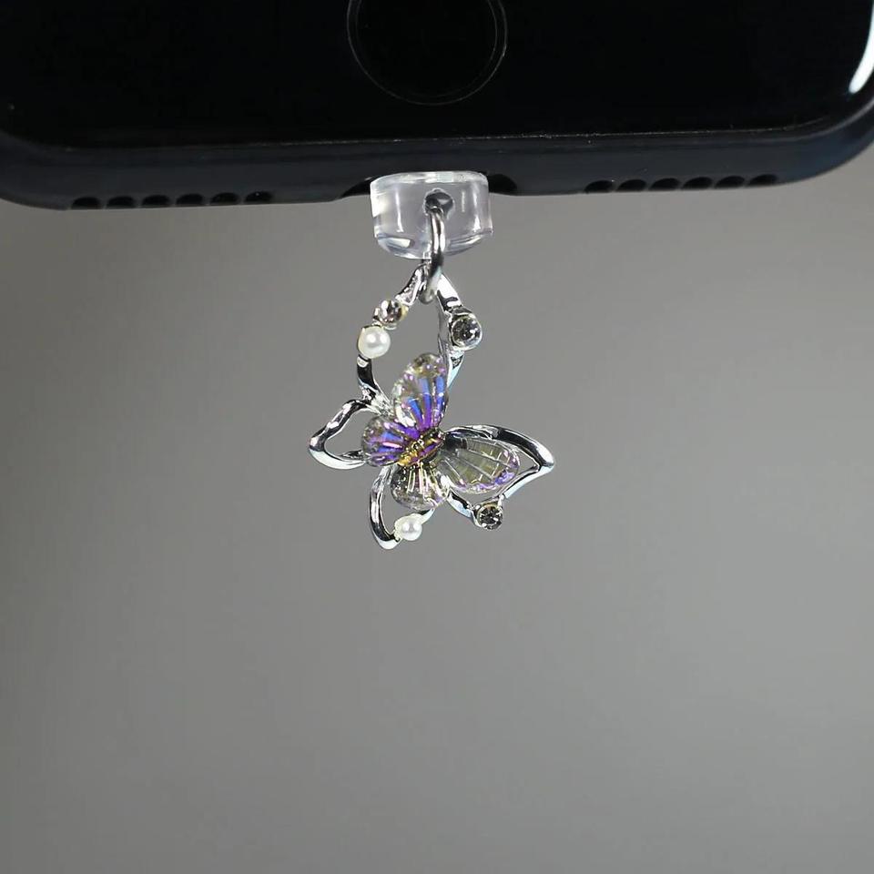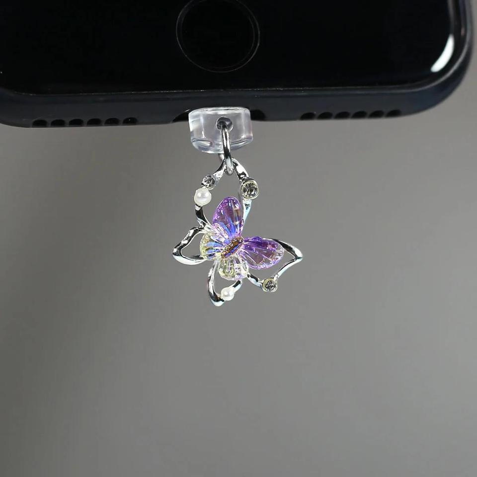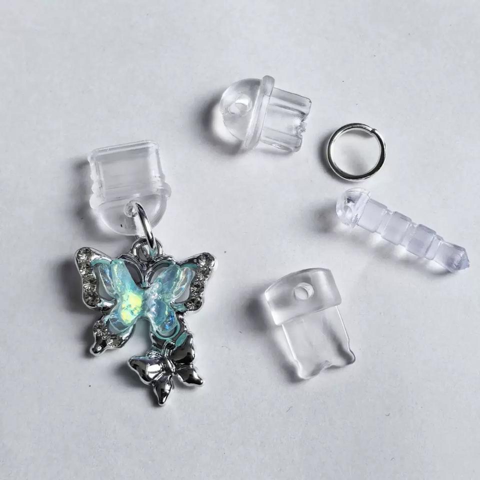 จุกปิดกันฝุ่นพอร์ตชาร์จโทรศัพท์ลายการ์ตูนผีเสื้อดอกไม้สุดน่ารัก วัสดุซิลิโคน+อะคริลิค รับทำโลโก้ตามสั่ง