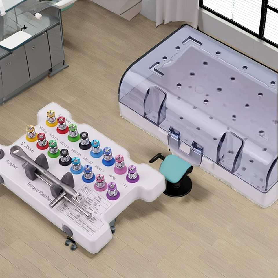 ชุดเครื่องมือไขควงสำหรับรากฟันเทียมแบบสากล พร้อมประแจแรงบิดโลหะแบบแมนนวล สำหรับเครื่องมือผ่าตัดรากฟันเทียม