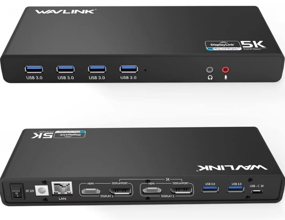 แท่นเชื่อมต่ออเนกประสงค์ USB 3.0 Wavlink WL-UG69DK1 USB C 5K สำหรับแล็ปท็อป รองรับ LAN 15 in 1 Ultra HD รองรับจอภาพหลายจอ
