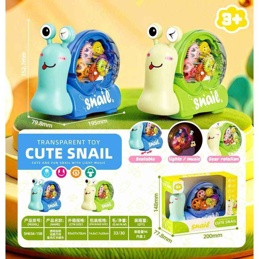 ของเล่นดนตรีรูปหอยทากน่ารักแบบใส 3+ ปีขึ้นไป ใช้แบตเตอรี่ ของเล่นพลาสติกเสริมพัฒนาการสำหรับเด็ก