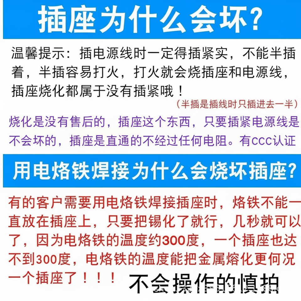 เตาไฟฟ้าอเนกประสงค์ ปลั๊กไฟสามขา อุปกรณ์เสริมเตาไฟฟ้า ขาทองแดง สำหรับหม้อหุงข้าว รุ่นฮอต
