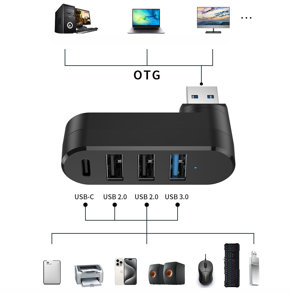 4-in-1หมุนได้4พอร์ต USB 3.0ฮับแยก
