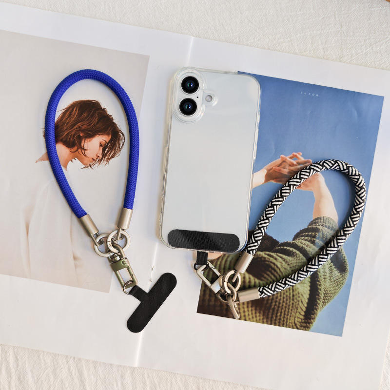 สายคล้องโทรศัพท์มือถือแบบสั้น แฟชั่นทันสมัย ทำจากโพลีเอสเตอร์ พร้อมสายคล้องข้อมือและแผ่นยึดสำหรับโทรศัพท์มือถือ