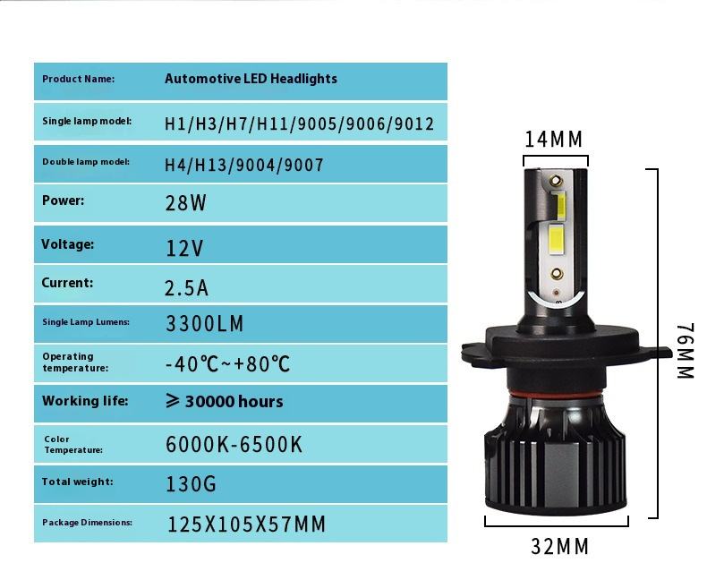 ไฟหน้ารถยนต์แบบ V3A H4 H13 9004 9007 H1 H3ไฟ LED อเนกประสงค์9005 9006 12V 28W สว่าง5600LM รถยนต์ใหม่