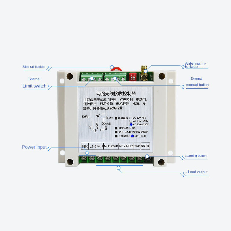 รีโมดูลตัวรับสัญญาณรีโมตไร้สาย RF AC100V-240V ส่งสัญญาณ433MHz สวิตช์ควบคุมระยะไกลแบบไร้สายทำจากพลาสติกอเนกประสงค์