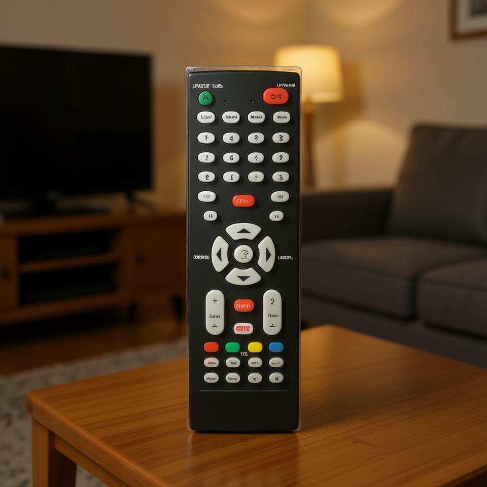 รีโมทคอนโทรลอเนกประสงค์ยี่ห้อ Young Electronicos สำหรับทีวีและเครื่องเล่นมีเดีย พร้อมรหัสการเรียนรู้ ระยะ 10 เมตร ตัวเครื่องทำจากพลาสติก