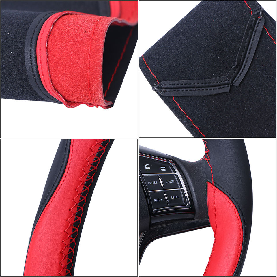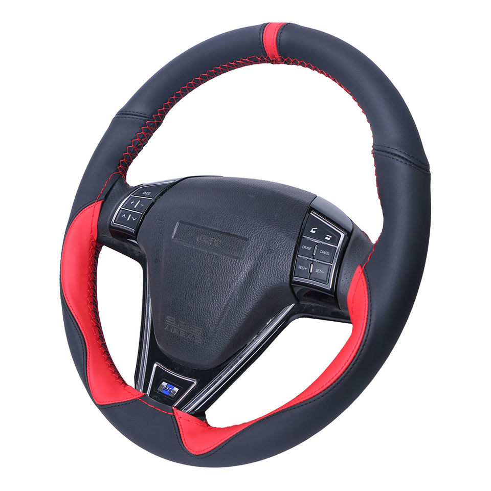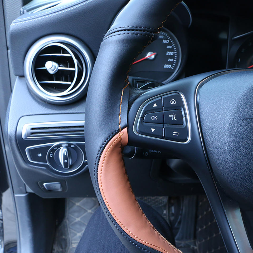 ปลอกหุ้มพวงมาลัยหนังนิ่มอเนกประสงค์อุปกรณ์เสริมสำหรับรถยนต์พวงมาลัยสไตล์สปอร์ตปลอกหุ้มพวงมาลัยแบบถักทนทาน15นิ้ว
