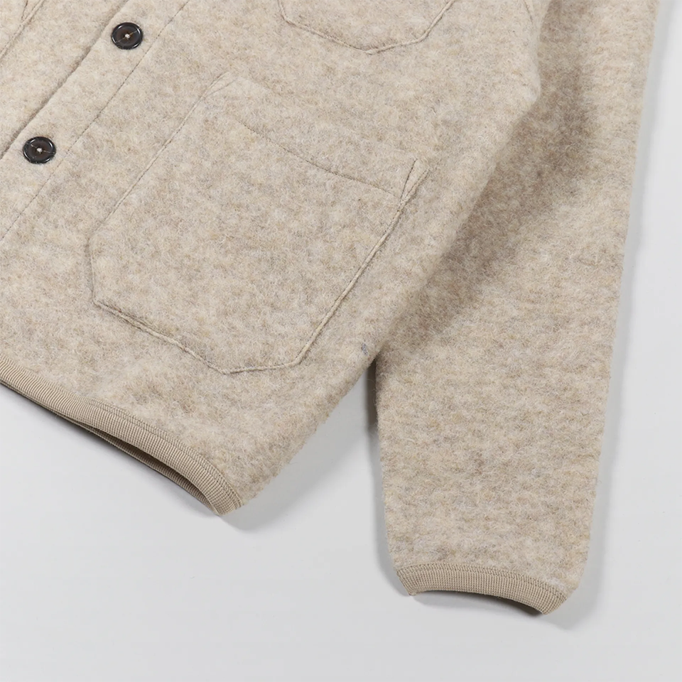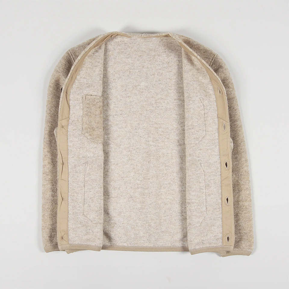 เสื้อคลุมคาร์ดิแกนขนสัตว์ผสมหนานุ่มสำหรับฤดูหนาว ยี่ห้อ Universal Works คอวี ติดกระดุมด้านหน้า มีกระเป๋าปะ งานถักแบบลำลอง เหมาะสำหรับใส่ทำงาน