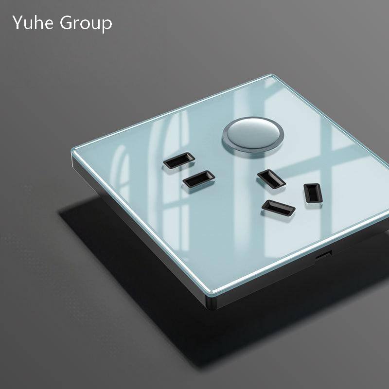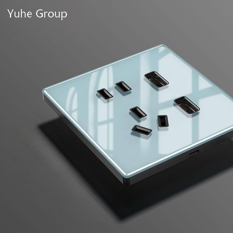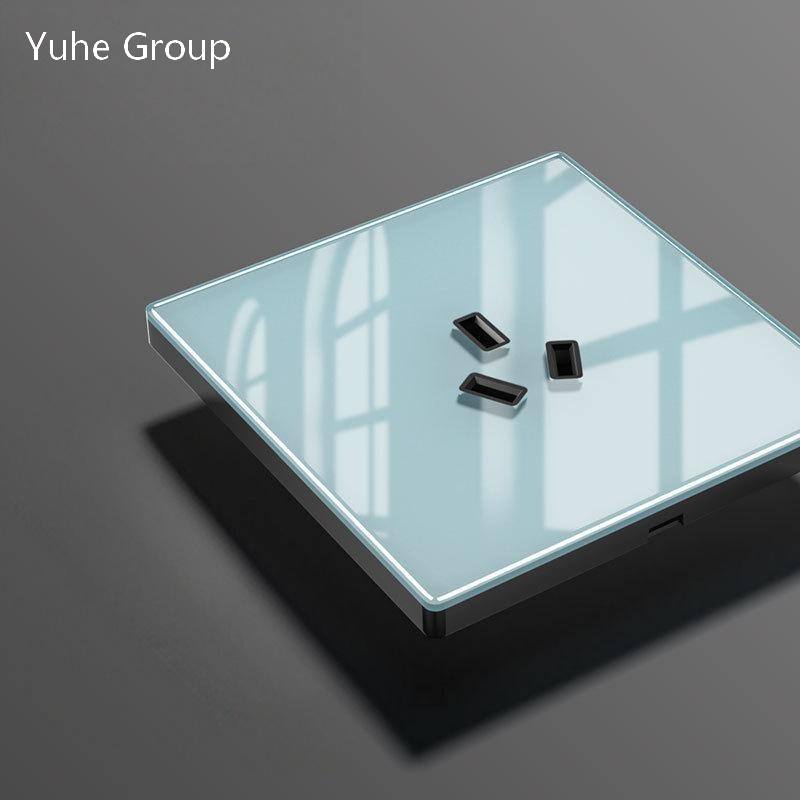 แผงควบคุมแบบสัมผัสติดผนังสีดำมาตรฐานสากล พร้อมเต้ารับกระจกนิรภัย 2 ช่อง แบบโมเดิร์น