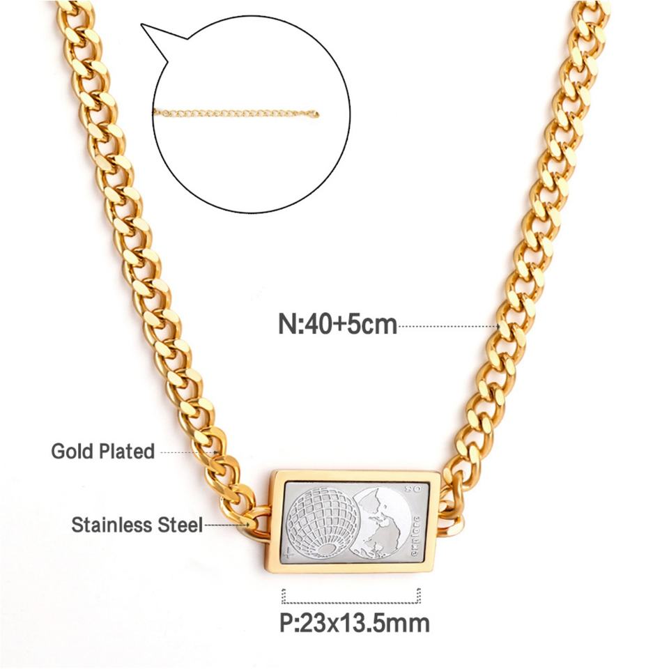 สร้อยคอจี้แบบคิวบา ดีไซน์ใหม่ปี 2022 สุดฮิต วัสดุสแตนเลส ชุบทอง 18k