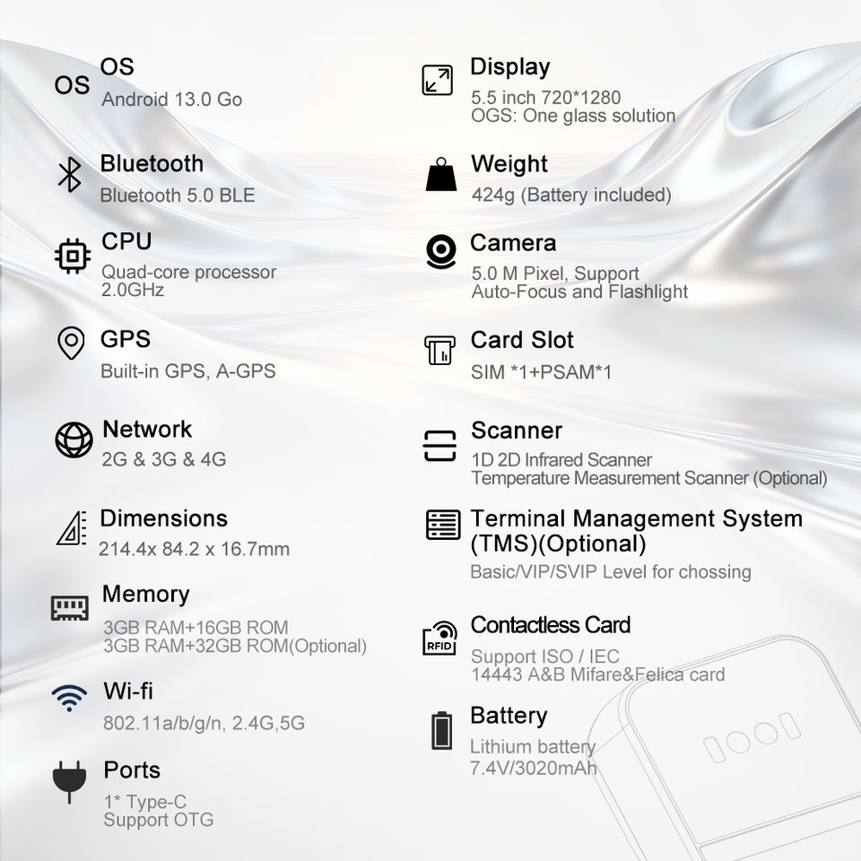 ขนาดหน้าจอ:หน้าจอ LCD ขนาด 5.5 นิ้ว