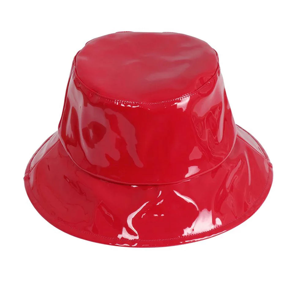 หมวกทรงกลมหนังแฟชั่นสำหรับผู้หญิงและผู้ชาย,หมวกทรงถังกันน้ำใส่ลำลองสำหรับทุกเพศสไตล์มหาวิทยาลัย