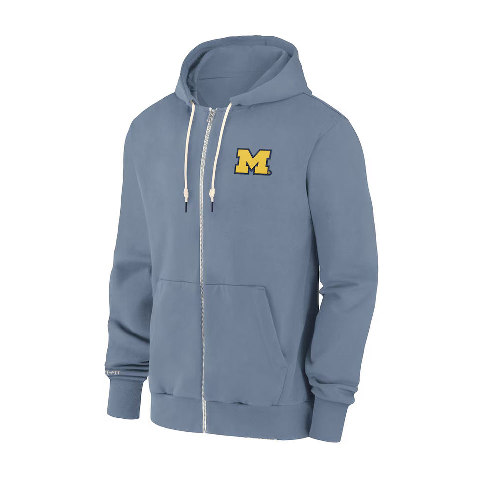 เสื้อฮู้ดซิปเต็มตัวคุณภาพสูง ยูนิเวอร์ซิตี้ ออฟ ไมชิแกน วูล์ฟเวอรีนส์ 2025 ลายผู้เล่นด้านข้างสนาม ขายดีที่สุด - สีน้ำเงิน