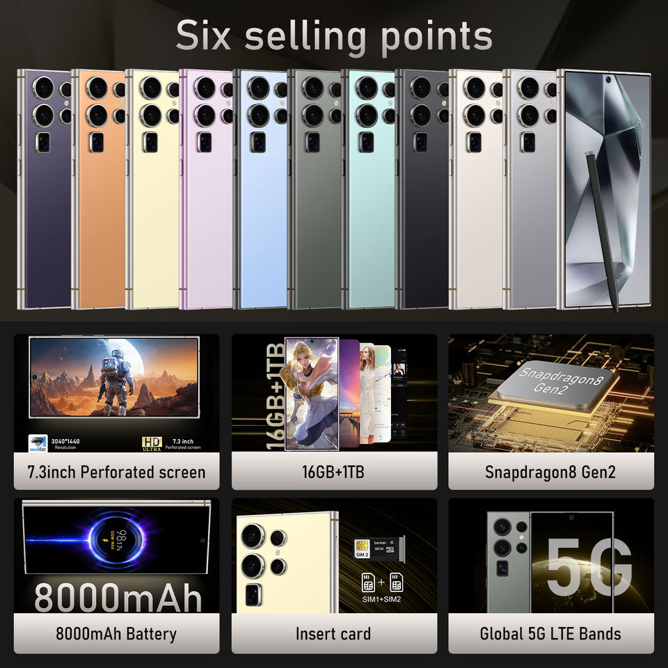 สมาร์ทโฟน ultra Pro C23 HD ปลดล็อค6.8นิ้ว Dual SIM 5G จอแสดงผล Quick65W ชาร์จ16GB 1TB เวอร์ชั่นสากลภาษาอังกฤษ