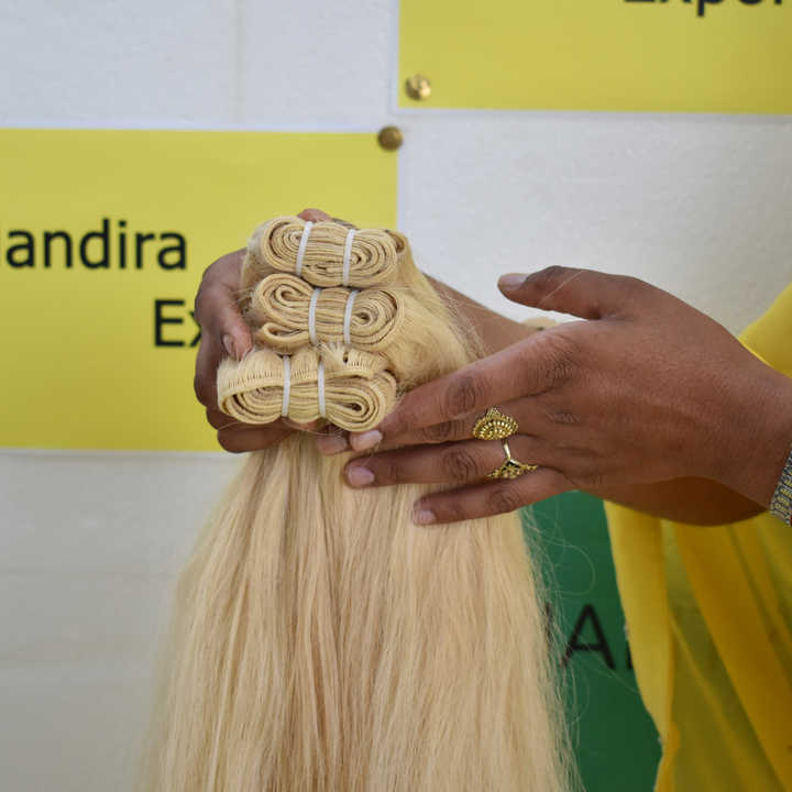 เครื่องมัดผมมนุษย์ผมตรงสีบลอนด์วิกผมยาวสองชั้นแบบไม่ผ่านกระบวนการ