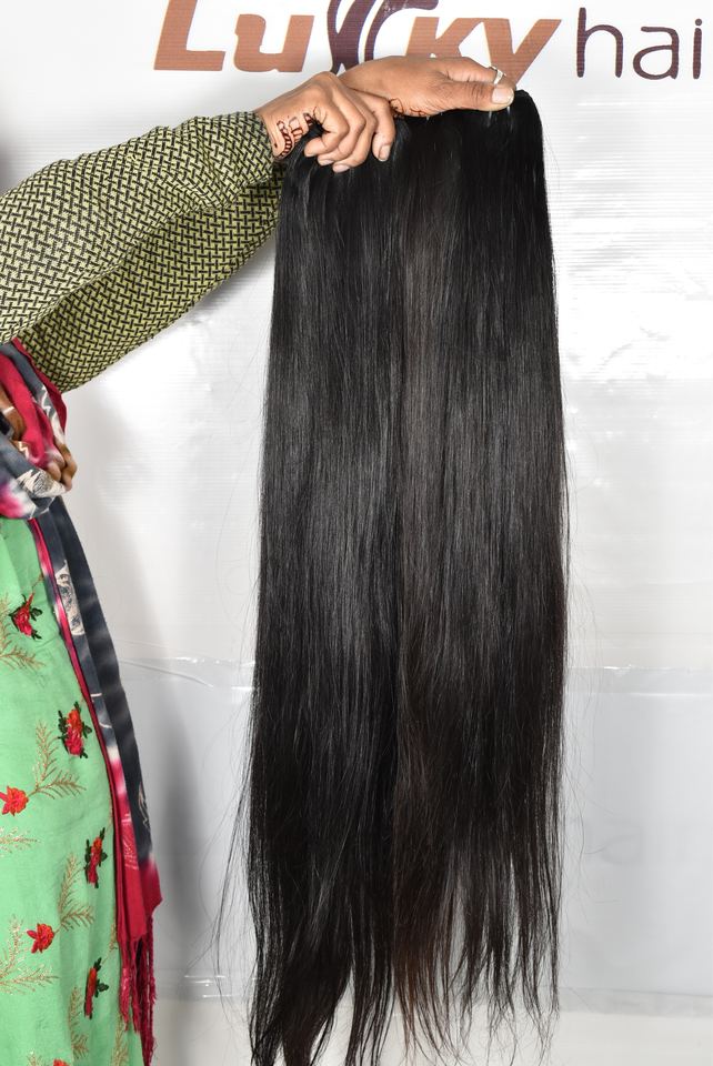 ผมต่อแบบเป็นลอนตรงสีดำสำหรับต่อผมคนอินเดียทำจากเส้นด้ายสองชั้นแบบไม่ผ่านกระบวนการ